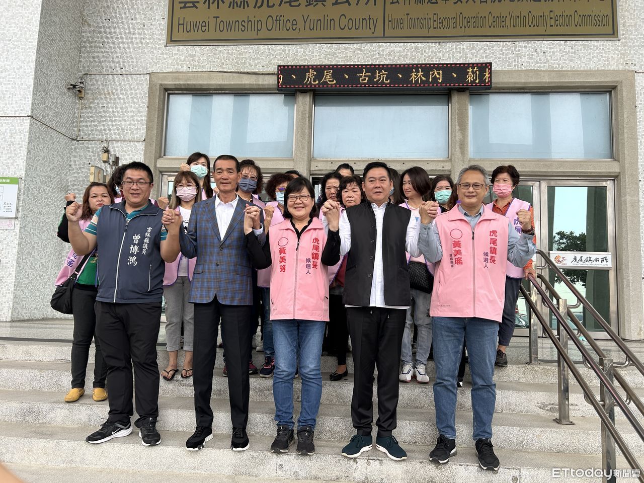 ▲無黨籍雲林縣議員黃美瑤今日在議長黃凱、副議長蔡咏鍀、縣議員曾博鴻及多名支持者陪同下完成虎尾鎮長補選登記。(圖/記者蔡佩旻攝)