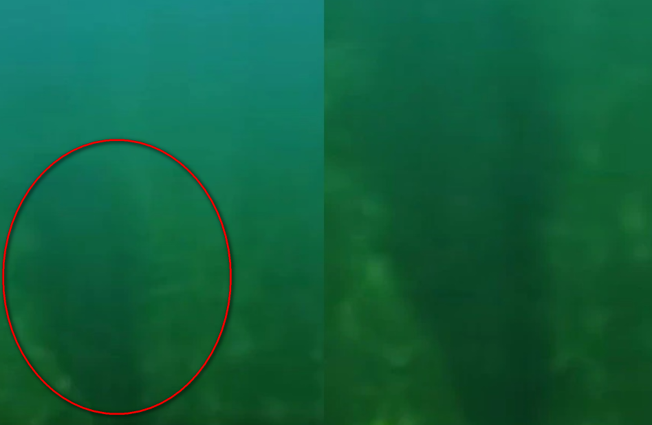 艾莉西亞表示,她早上帶孩子們去溪流游泳,並拍下許多歡樂的照片,沒想到返家後查看照片時,發現混濁的水中潛伏著一個巨大身影,看起來像是一隻有著巨大身軀和長尾巴的生物。