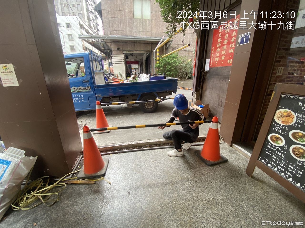 ▲周思潔重摔地點,市府也派員改善騎樓高低差,並在今天開放通行。(圖/台中市政府提供,下同)