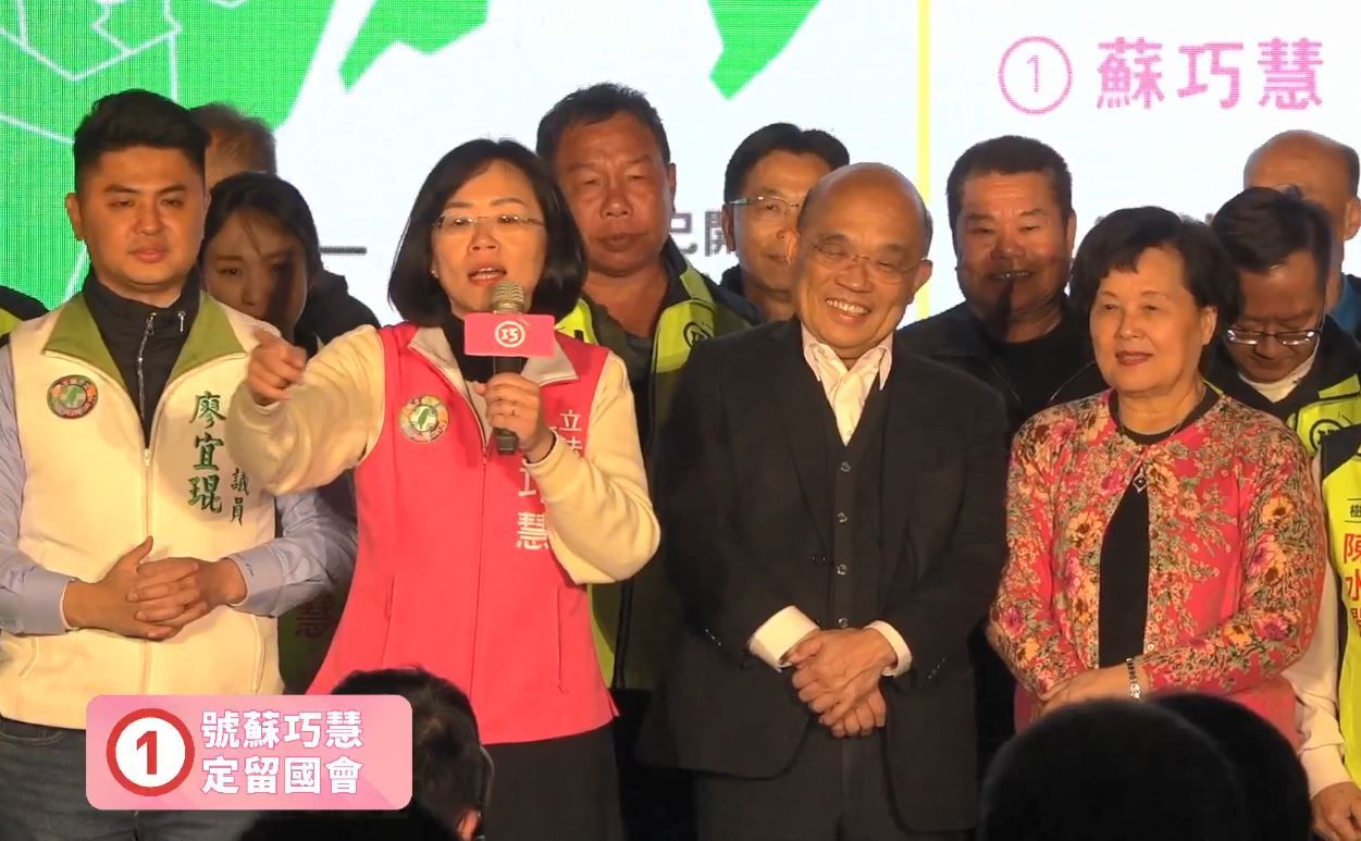 ▲前任行政院院長蘇貞昌現身致詞。(圖/翻攝臉書/蘇巧慧)