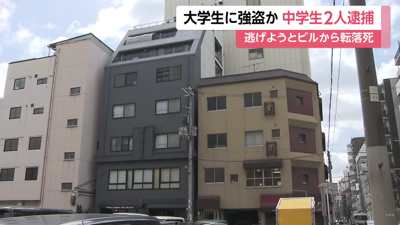 日本今年2月發生駭人聽聞的事件,一名22歲的男大生在半路上慘遭3名就讀國中的學生勒索取財,身上貴重財物全被洗劫一空,然而在逃走的過程中,卻疑似失足而不慎墜樓、倒臥街邊,送醫後仍宣告傷重不治,目前警方已經逮捕犯案的2人。
