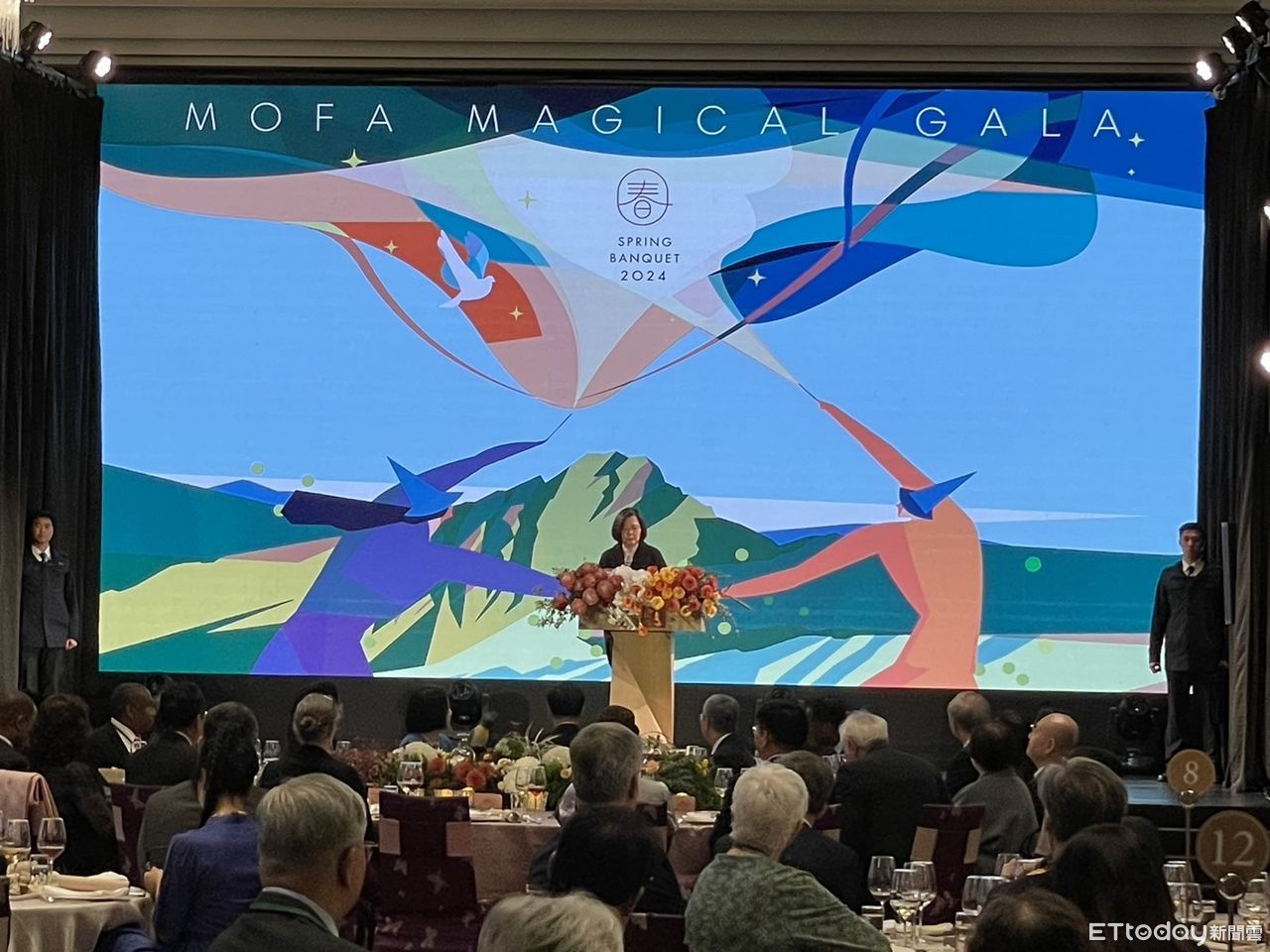 蔡英文表示,每一年外交部的春宴,都是各國貴賓和國內各界好友,相互交流的盛會。藉這個機會,要特別感謝各位使節代表,長期以來對台灣的支持和協助,也謝謝現場所有的夥伴,跟政府一起拚外交。