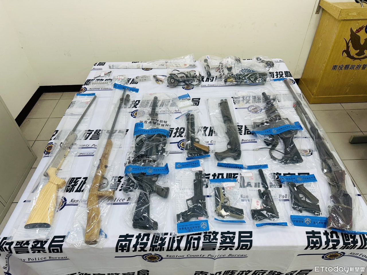▲南投警強力執法,查獲各類槍枝11把。(圖/記者高堂堯翻攝)