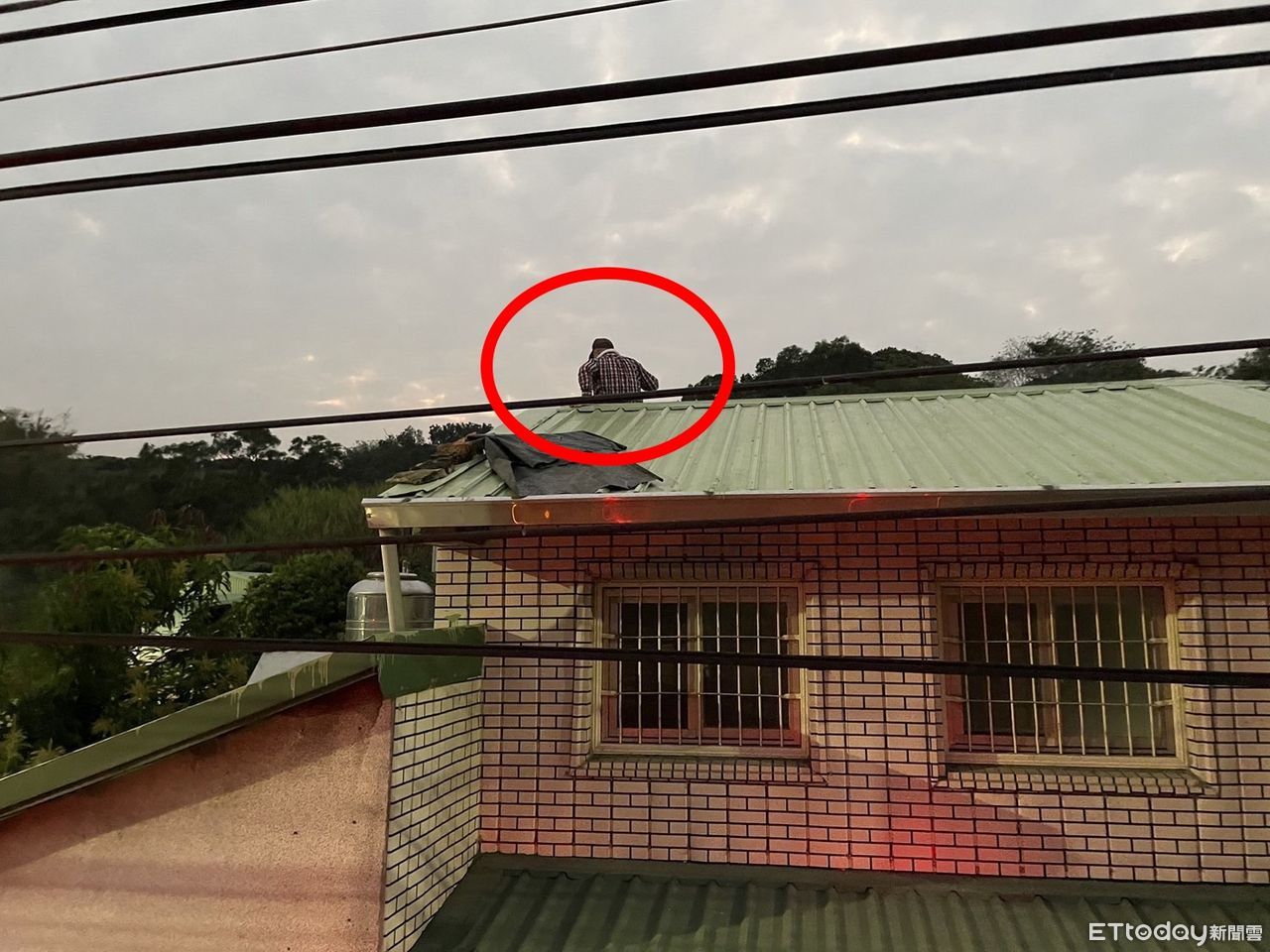 ▲男子受困在2樓鐵皮屋頂 。(圖/記者吳奕靖翻攝)