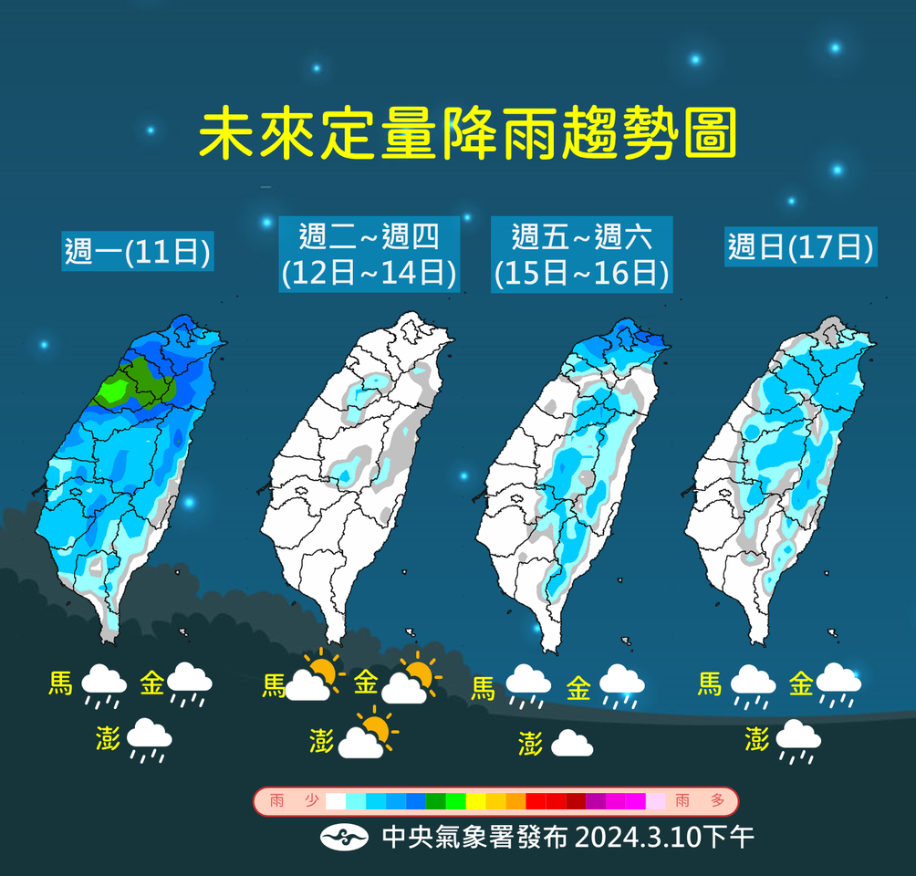 ▲未來一周降雨趨勢預報。(圖/氣象署提供)