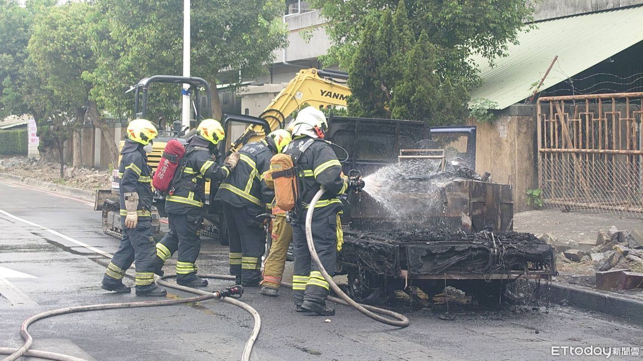 ▲屏東市工業區旁自小貨車起火 。(圖/記者陳崑福翻攝)
