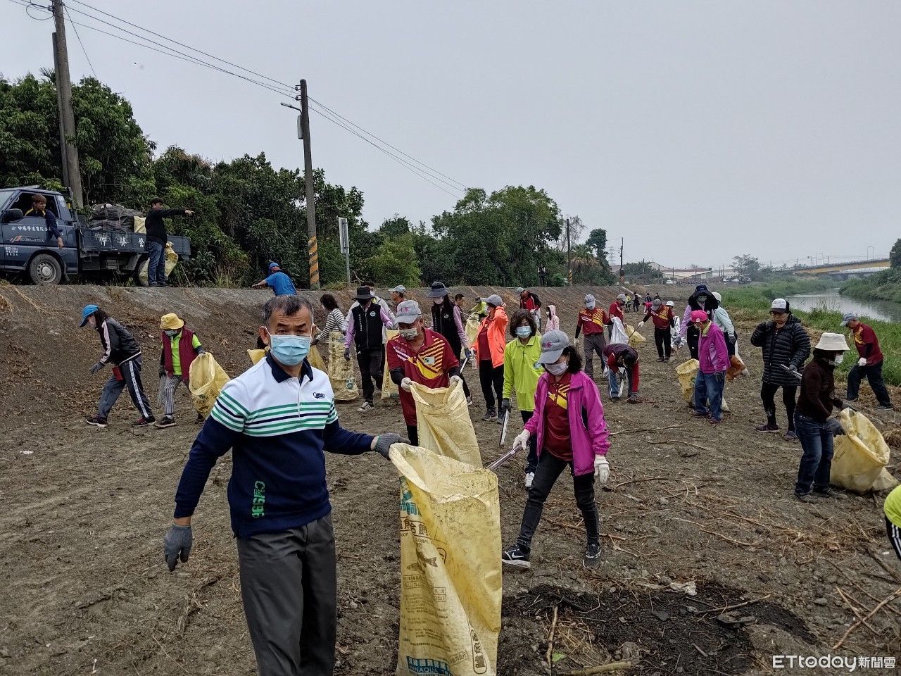 ▲屏東縣政府號召民間企業及水環境巡守隊逾百位志清除牛稠溪垃圾 。(圖/屏東縣政府提供,下同)