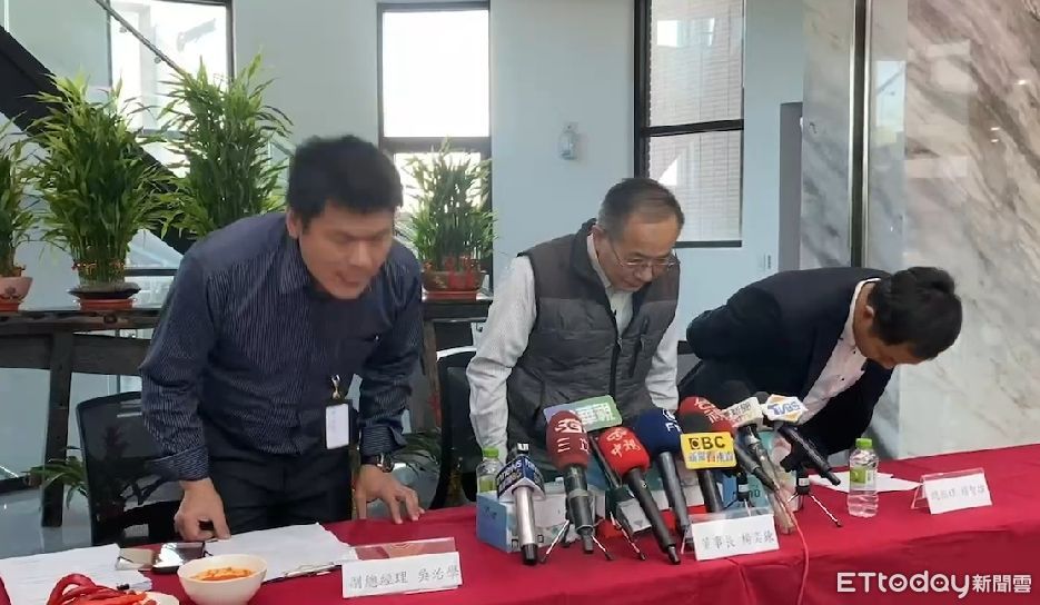 ▲金福華董事長今率總經理、副總經理出面鞠躬道歉。(圖/記者高堂堯翻攝)