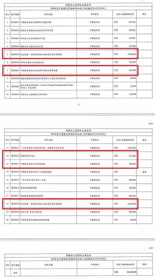 ▲民進黨公布國民黨申請民主基金會的名目。(圖/民進黨提供,下圖同)
