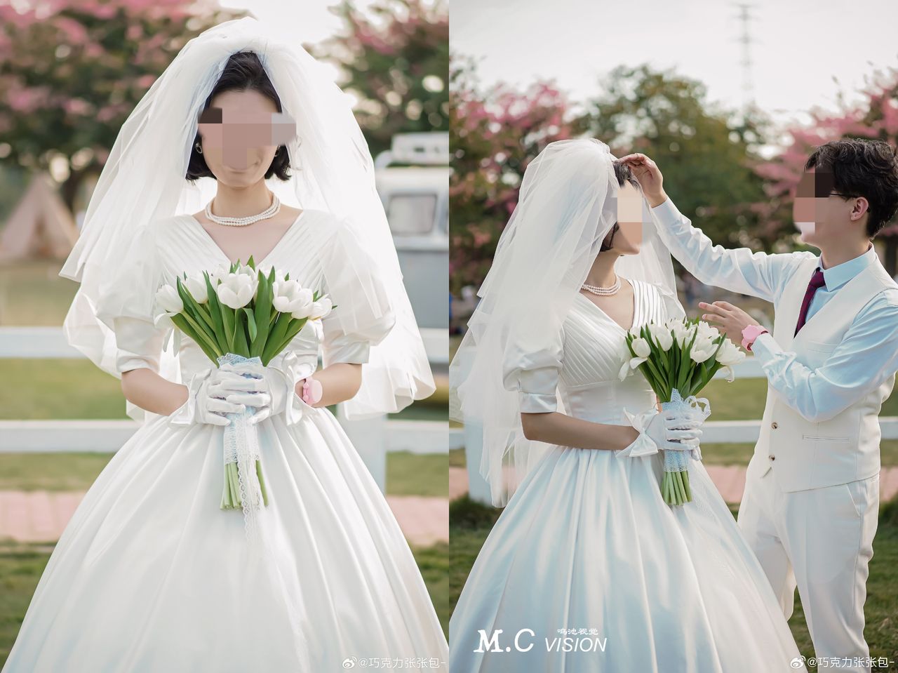 ▲女孩丈夫剛PO出婚紗照。(圖/翻攝自微博)