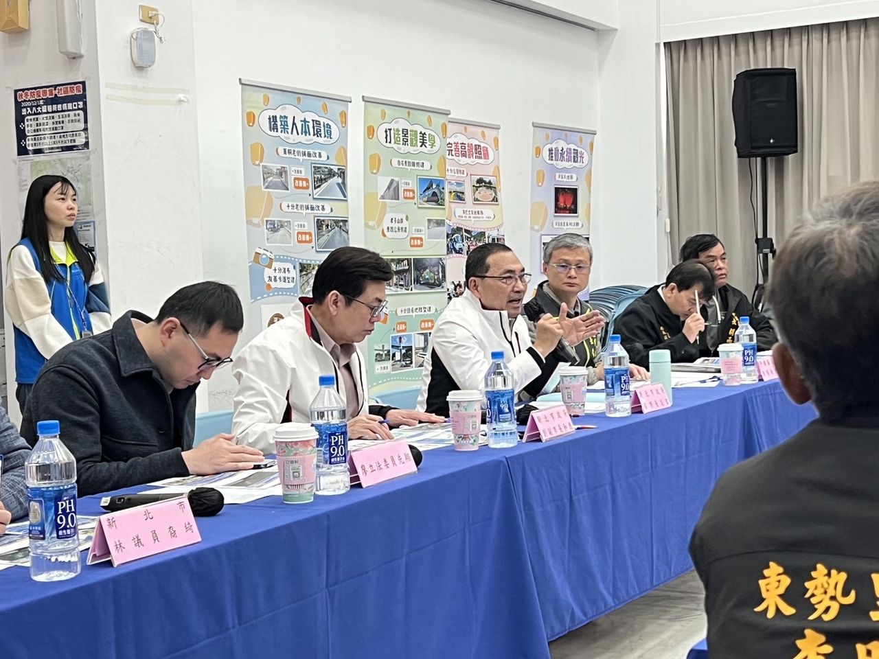 隨後侯友宜也前往瑞芳區行動治理,座談會中首先就列管案件進行討論。針對里長關心金瓜石地區設置大型停車場需求一案,侯友宜表示,停車量能、交通安全是九份所面臨到的重要課題,局處要盡力落實,同時也請區長要與業者溝通,共同來努力,才能取得雙贏。