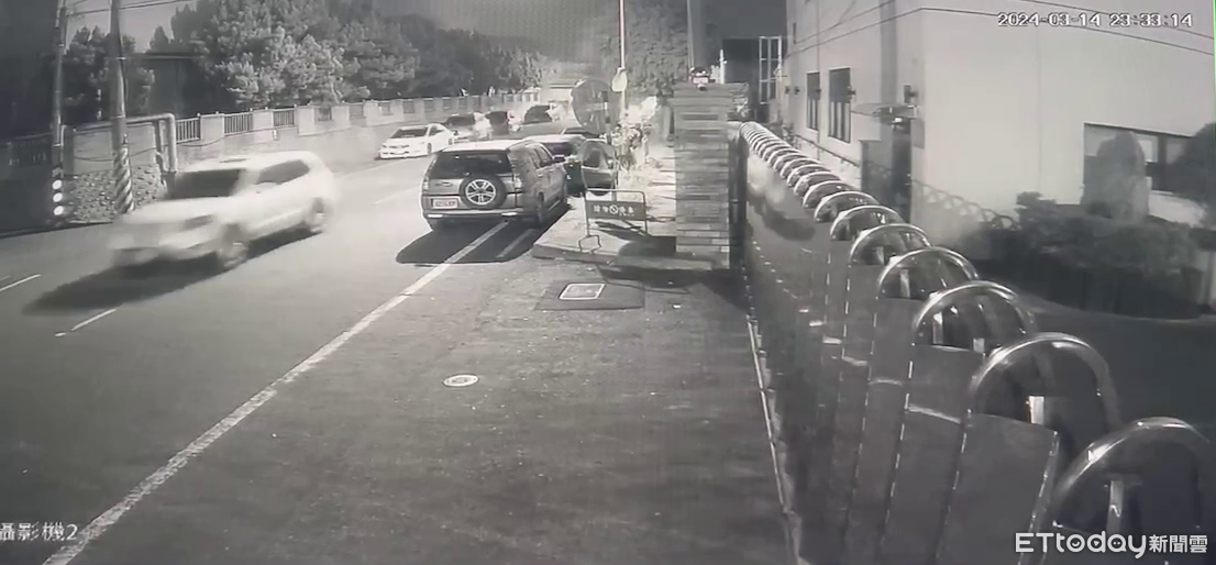 ▲白色休旅車駕駛(左)拒檢衝撞員警後逃逸,警依法開槍制止並鎖定犯嫌追緝中。(圖/記者高堂堯翻攝)