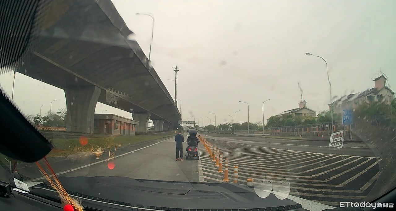 ▲宜蘭一名老翁騎電動代步車誤闖國5入口匝道。(圖/記者游芳男翻攝,下同)