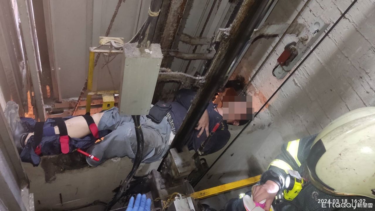 ▲工人執行電梯拆除工程時,不慎遭電梯壓傷 。(圖/記者黃彥傑翻攝,下同)
