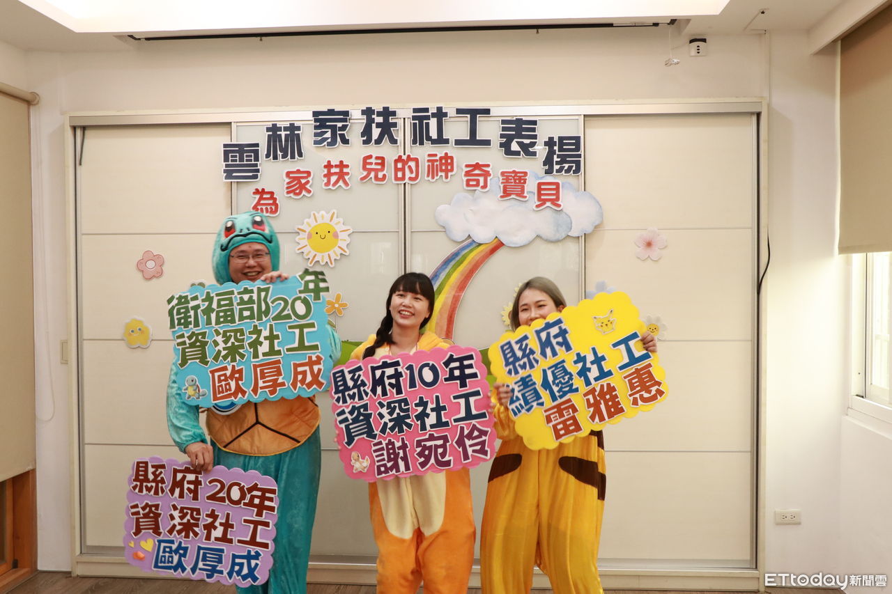 雲林家扶中心社工師督導歐厚成,獲衛福部與雲林縣府20年資深敬業雙重殊榮,另外,縣府10年資深敬業資深社工師謝宛伶,與社工師雷雅惠榮獲績優社工,月底將接受公開表揚,昨(18)日雲林家扶中心主委陳燦勳特別以社工一級棒蛋糕賀喜,肯定也為社工們加油打氣。
