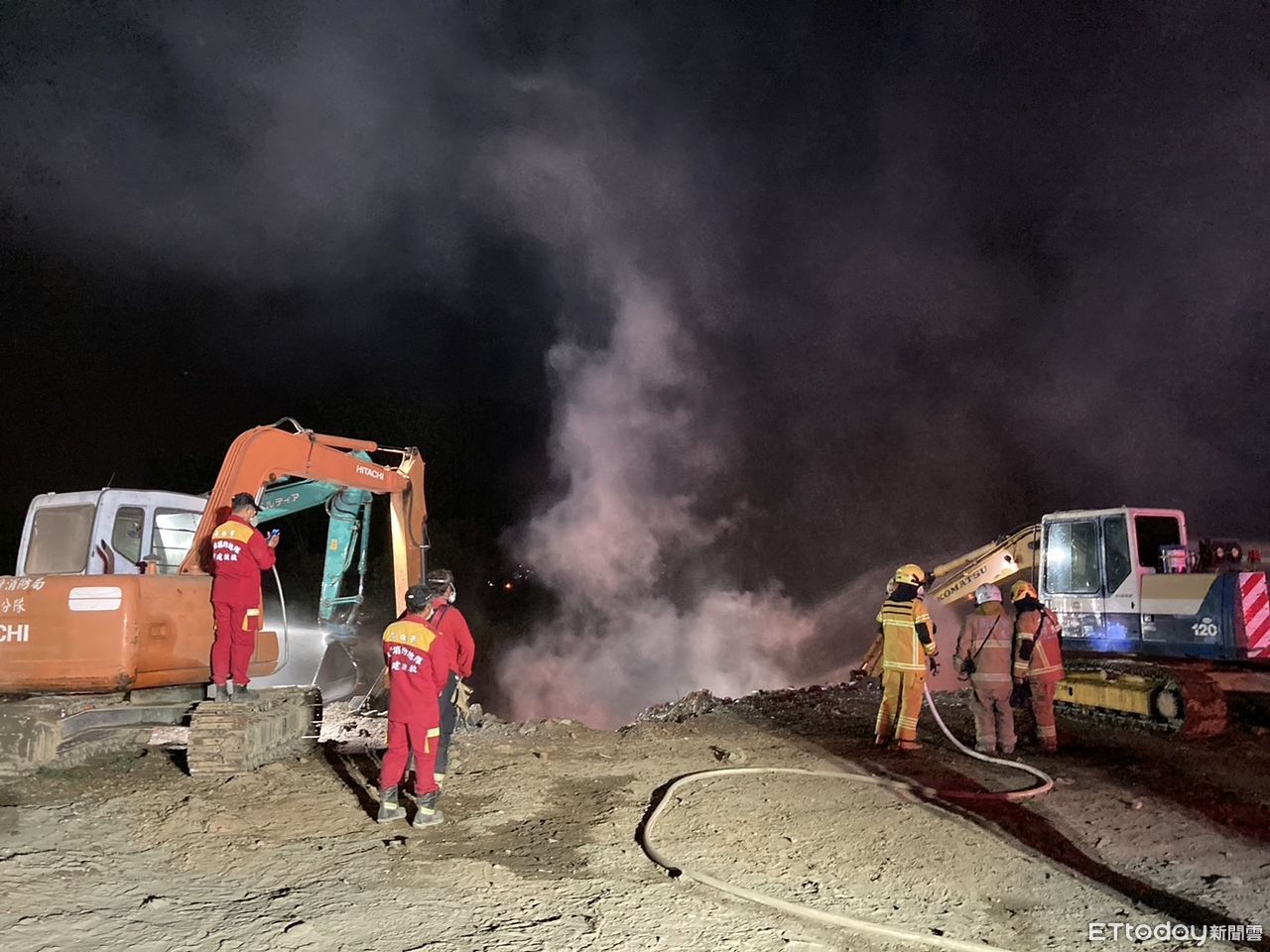 環保局經查,該處廢棄物非法棄置場棄置廢樹枝及營建混合物,因管理及貯存不當發生火災,導致產生異味及粒狀物。消防局出動26車前往灌救,火勢直到今(20)日凌晨2時50分才完全撲滅。