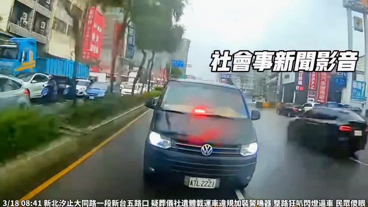 ▲汐止發生葬儀社廂型車違規加裝爆閃燈並逆向超車的離譜駕駛行為。(圖/翻攝畫面,下同)