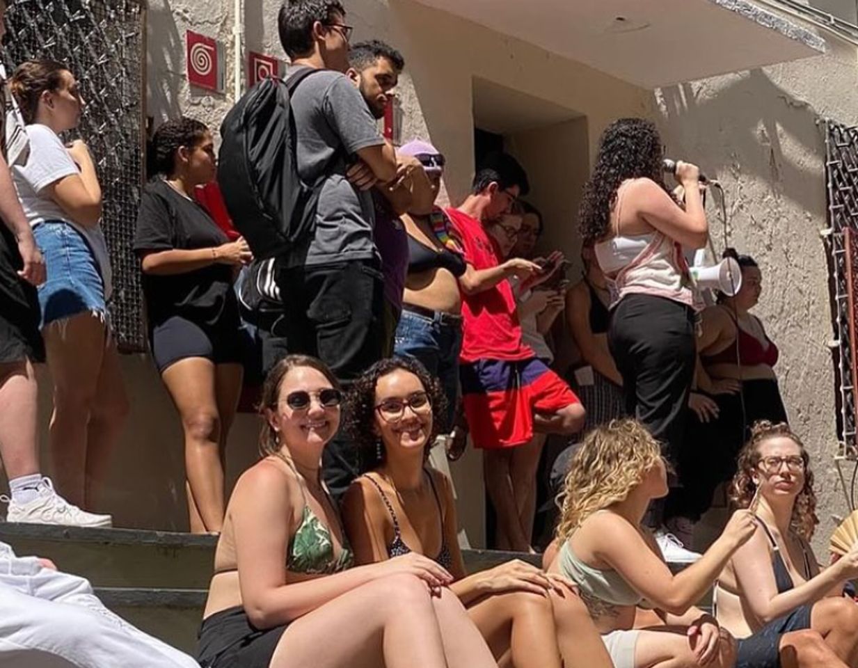 ▲巴西體感溫度高達62.3度,大學生穿比基尼坐在路邊抗議教室沒冷氣。(翻攝自IG@spottedpucsp)