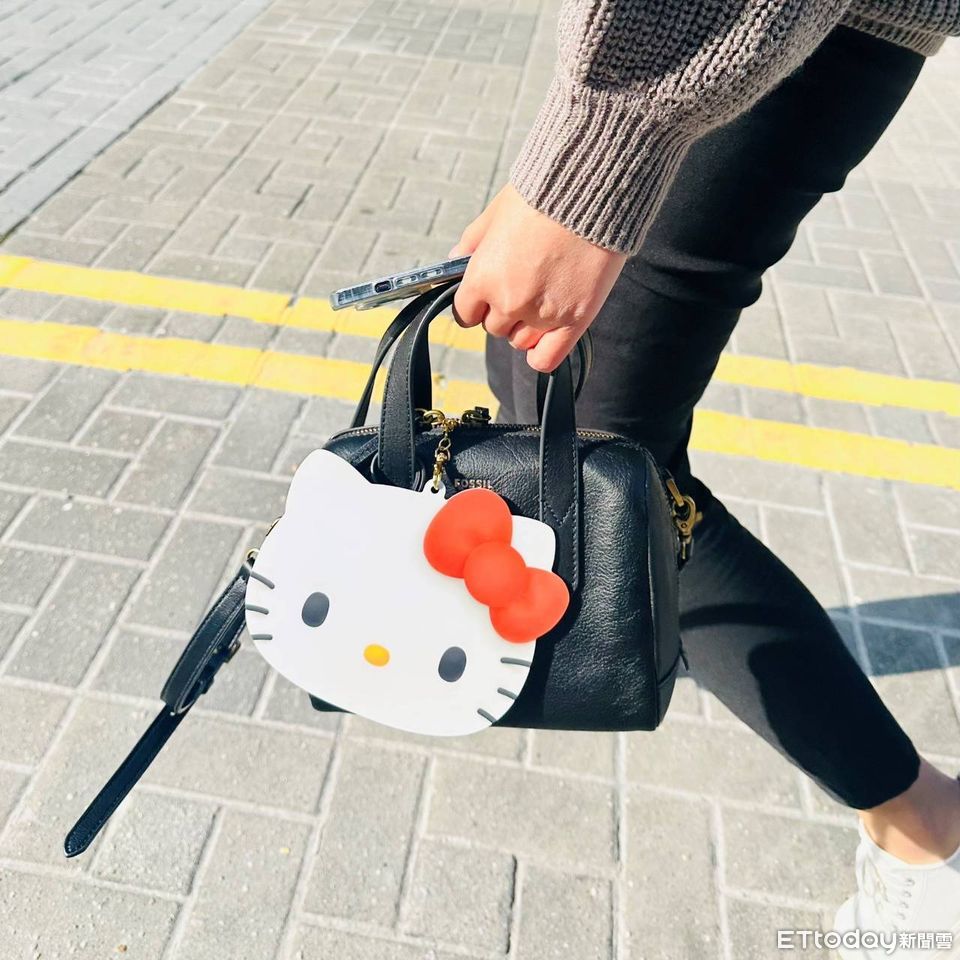 ▲「HELLO KITTY 50th巨大造型悠遊卡」掛在包包上超搶眼。(圖/悠遊卡公司提供)
