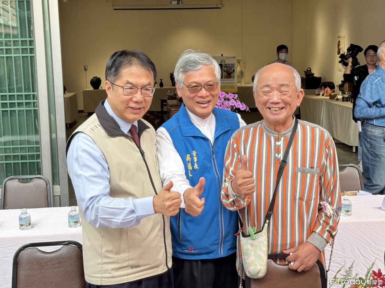 ▲台灣陶藝界大師翁國禎,在台疆祖廟大觀音亭暨祀典興濟宮舉辦「翁國禎感恩陶藝展」,展出39件歷年創作作品及新的挑戰「手拉坯壽桃」作品,市長黃偉哲等人親臨祝賀。(圖/記者林東良攝,下同)
