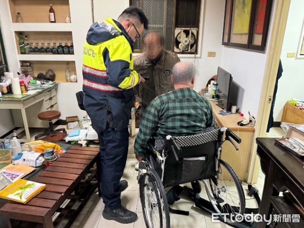 ▲▼警方獲報趕抵和友人合力將陳男扶回輪椅。(圖/龜山警分局提供)