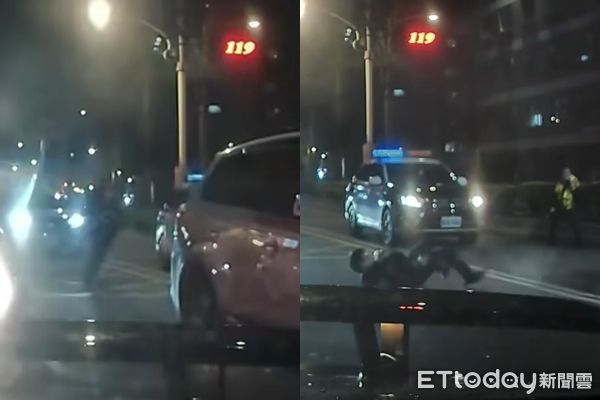 畫面當中可以看見,一名員警從警車下來以後,快步上前衝去,過了不久後倒在地上翻滾,手還捂在肩膀上,疑似是受了傷。不過,儘管已經受傷,員警仍舊十分盡責,朝著嫌犯的方向不斷開槍。