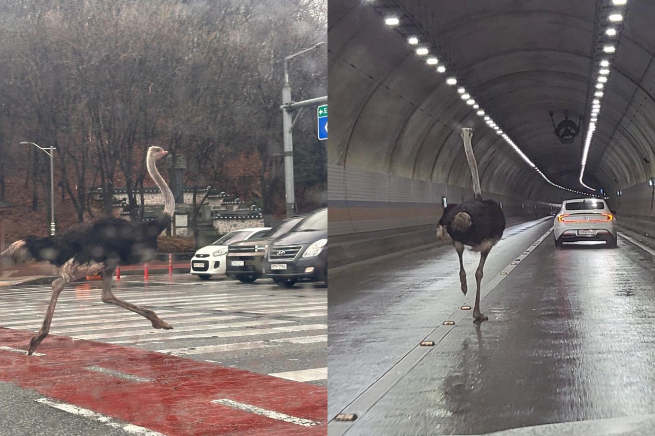 韓國京畿道城南市一處大街上今(26日)上午出現一隻奔跑的鴕鳥,正值通勤時間,不少準備上班的民眾目睹鴕鳥在車陣中狂奔,拍照上傳網路,當地警消獲報後已順利捕獲鴕鳥。