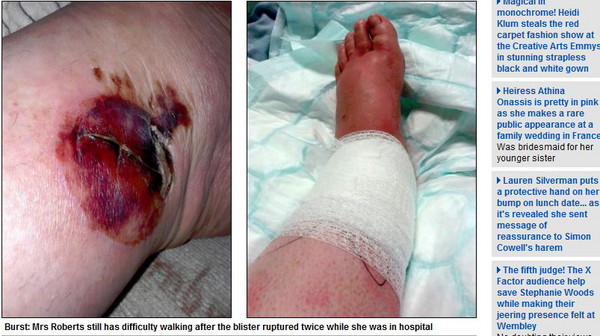 羅伯茲住院以來,醫師持續使用抗生素,但傷口卻仍然沒有好轉,膿包腫大後爆裂,3天內就破了2次,已經不能行走。 醫師推測,可能是蜘蛛咬傷後使她的血液「中毒」,但詳細原因仍待檢驗結果。羅伯茲表示沒想到這麼小的蜘蛛竟然能造成嚴重的傷口,也沒預料到這種事情會發生在英國,「以後再看到應該會把我嚇死」。