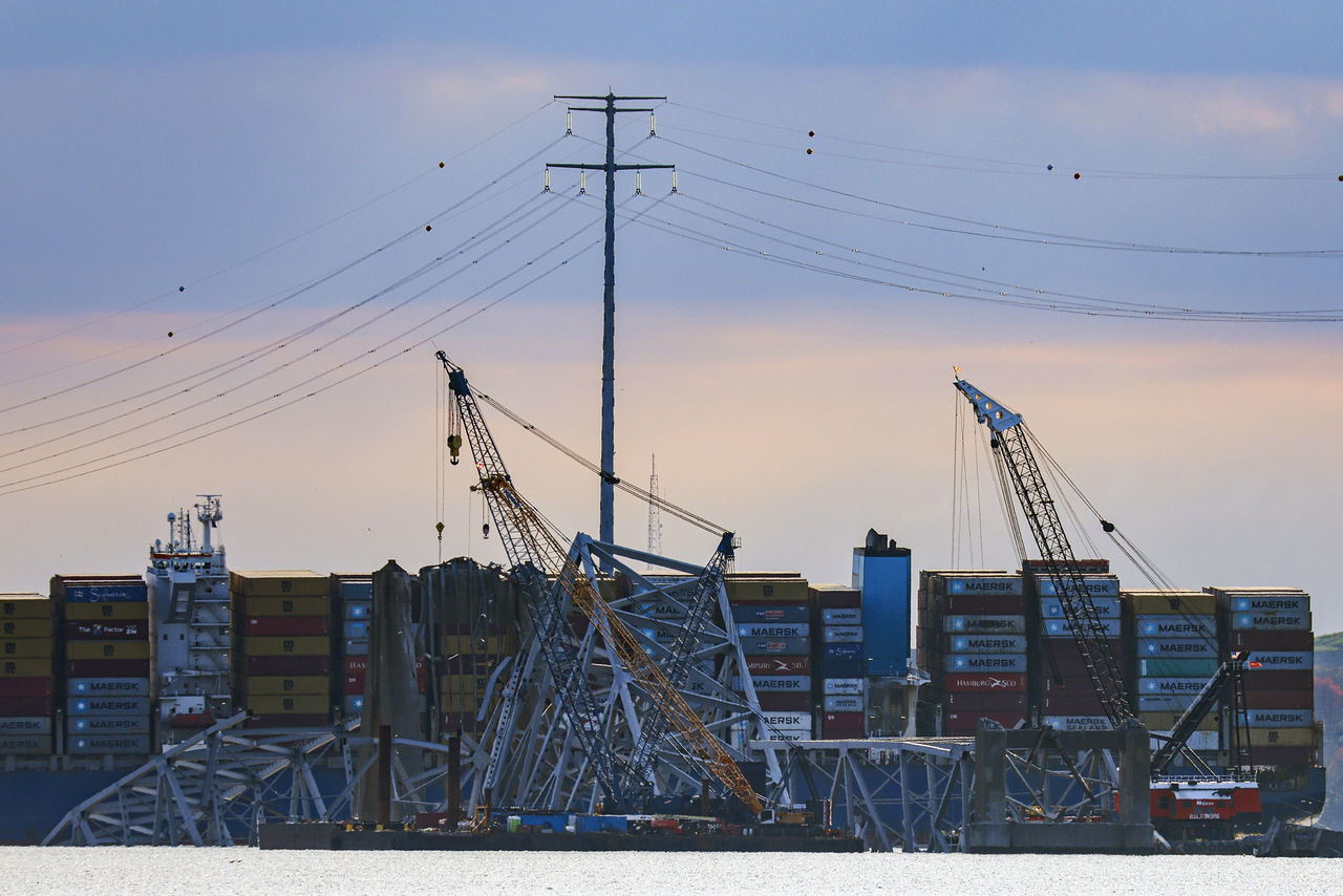 凱伊橋坍塌後,殘骸層層堆疊,導致美國最繁忙港口之一的巴爾的摩港因出入航道受阻航運中斷。