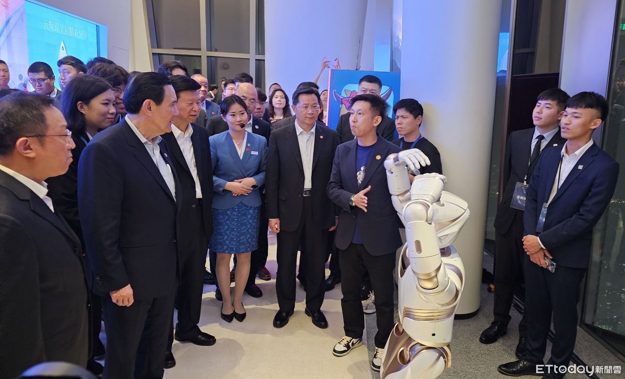 前總統馬英九今(1)日在晚宴結束後,在國台辦主任宋濤等官員陪同下,觀看約1000台無人機進行表演。緊接著,一行人前往深圳最高樓「平安金融中心」,與台青交流和瞭解當地科創企業,現場有人形機器人雙臂「比心」,喊出「愛你們唷」。