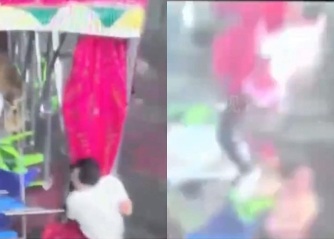 江西南昌31日凌晨出現強風雷電和強降雨天氣,目前已造成4人死亡,10多人受傷。一名燒烤店老闆為保住不被強風吹走,緊緊抱著棚架,妻子與4名友人一同拉住棚子,但仍不敵狂風的威力,老闆連人帶棚一起被吹上天。