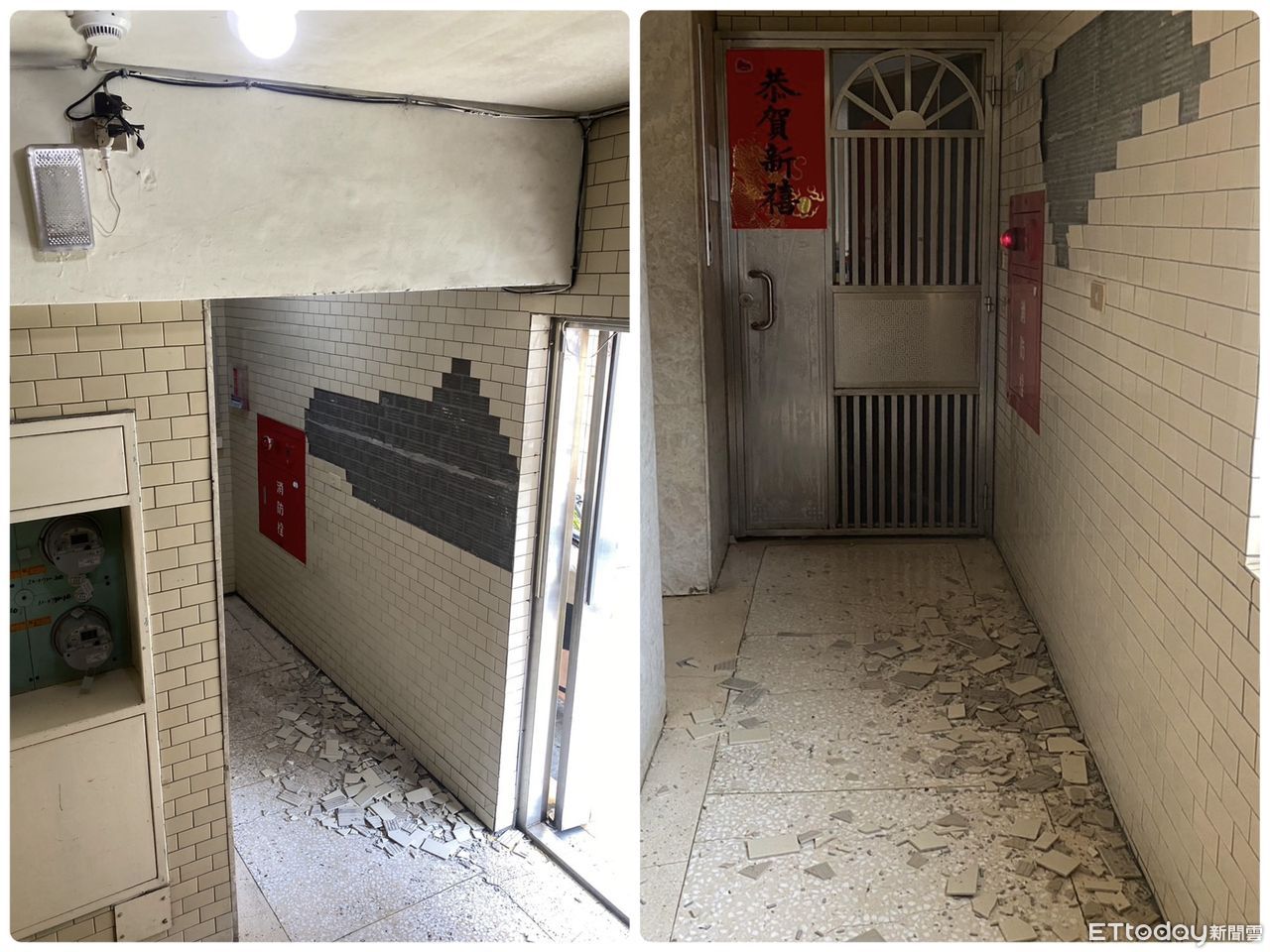 ▲地震可能導致建築物外牆的磁磚鬆動或剝落,立即檢查建築物受損程度。(圖/民眾提供)