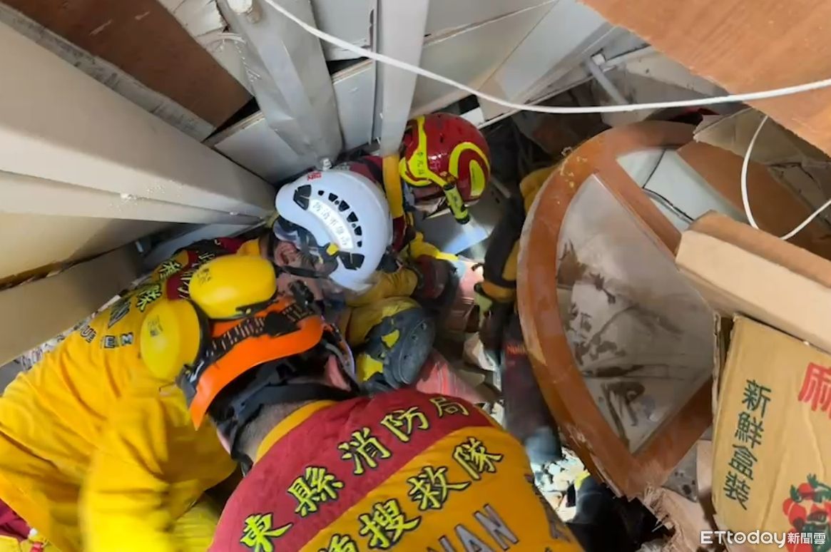 ▲花蓮地震造成天王星大樓倒塌,消防署特搜人員搜索中。(圖/記者黃彥傑翻攝)