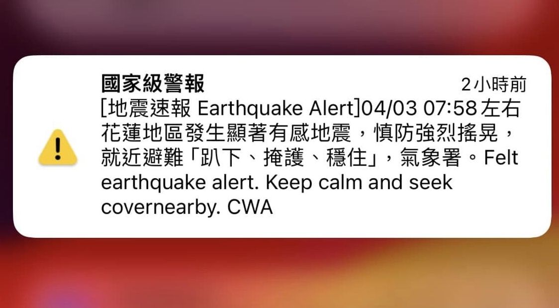 花蓮縣壽豐東方海域今天早上發生7.2地震,最大震度達「6強」,全台有感劇烈搖晃,外界質疑,「國家級警報為何未發送?」中央氣象署晚間緊急發布聲明回應,指地震預警系統共發布2次國家級警報,其中有7個縣市沒有發警報,原因是「地震預警系統低估地震規模」。