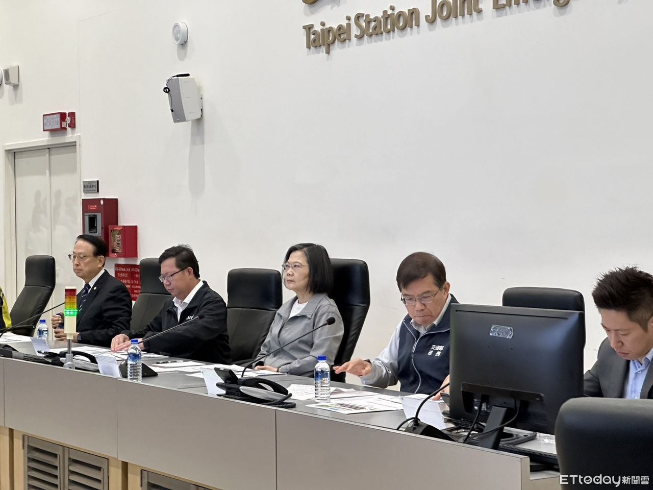 ▲總統蔡英文前往台北車站聯合防災中心視察「台鐵、高鐵及公路0403地震影響及搶修疏運情形」。(圖/記者陶本和攝)