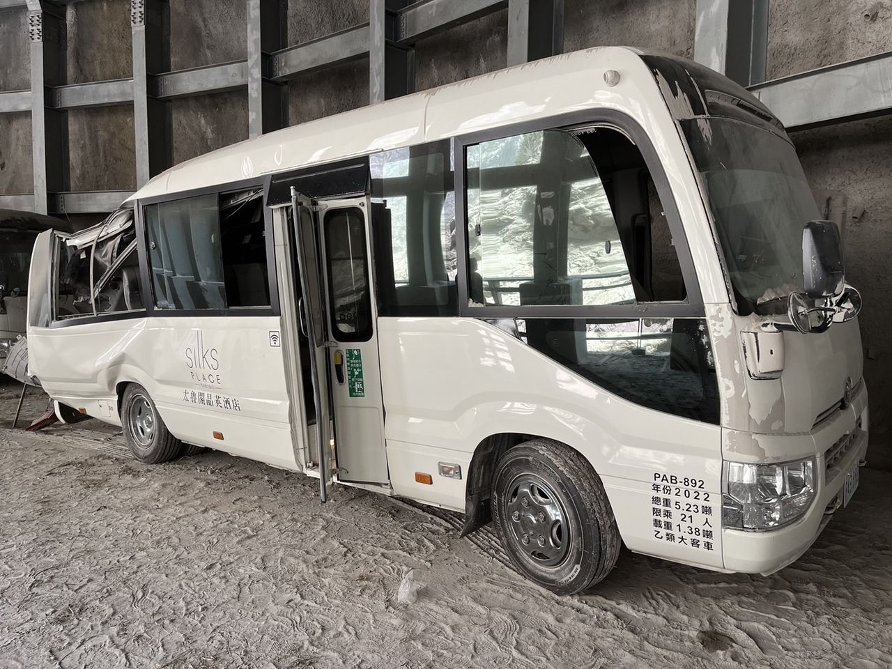 ▲晶英酒店小巴遭落石砸中,司機當機立斷加速衝進明隧道避難。(圖/晶英安全部經理陳衛華提供)