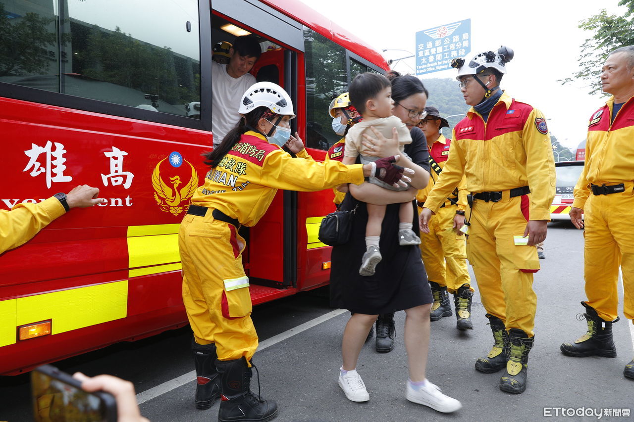 ▲經過連日搶救後,陸續有受困災民在搜救隊的護送下平安下山。(圖/記者湯興漢攝)