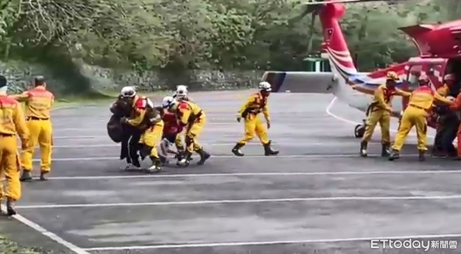 花蓮3日上午發生強震,引發台8線(中橫公路)多處發生落石、坍塌導至交通中斷,天祥、綠水目前受困640人,繼昨日趁運送物資順道載下9人,今天又載下12名旅客下山,都是以老老弱婦孺、慢性疾病的民眾為優先,眾人下山後姿態雖疲憊,但仍都露出笑容。