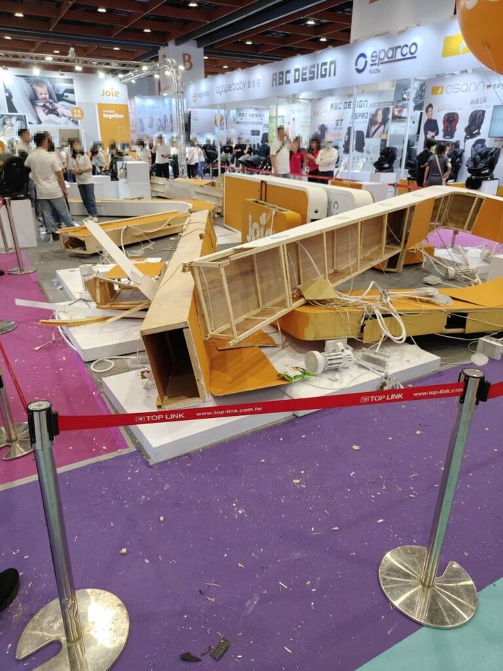 ▲「台北國際嬰兒與孕媽咪用品展」驚傳攤位倒塌。(圖/翻攝自記者爆料網)