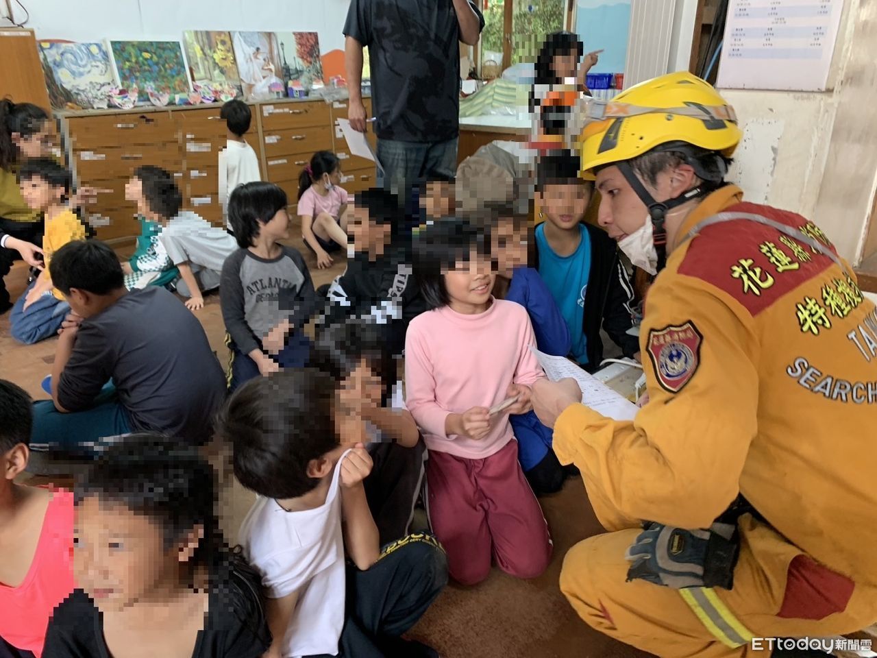 ▲西寶國小受困學童見搜救人員露天真笑容。(圖/西寶國小提供)