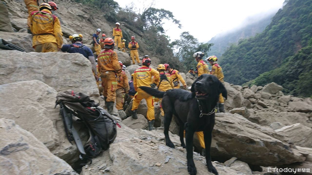▲花蓮地震救援持續中,派出搜救犬協助搜尋罹難者。(圖/記者黃彥傑翻攝)
