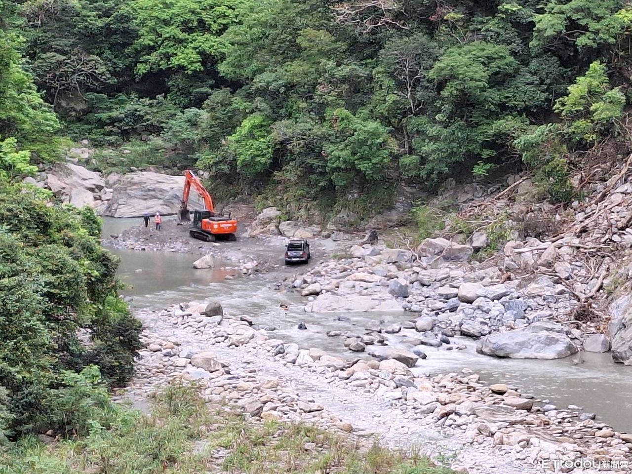 此外,游姓一家人目前仍有3人失聯,相關單位昨已派出大型重機具進駐準備開挖,但現場佈滿落石前進困難,至傍晚收工時挖土機僅前進200公尺,今早繼續開挖作業,目前河床部分已經過橋,水潭也已填土完成,再前進100公尺,已抵達0.3K處,距離尋獲3具遺體的0.5K處仍差200公尺。
