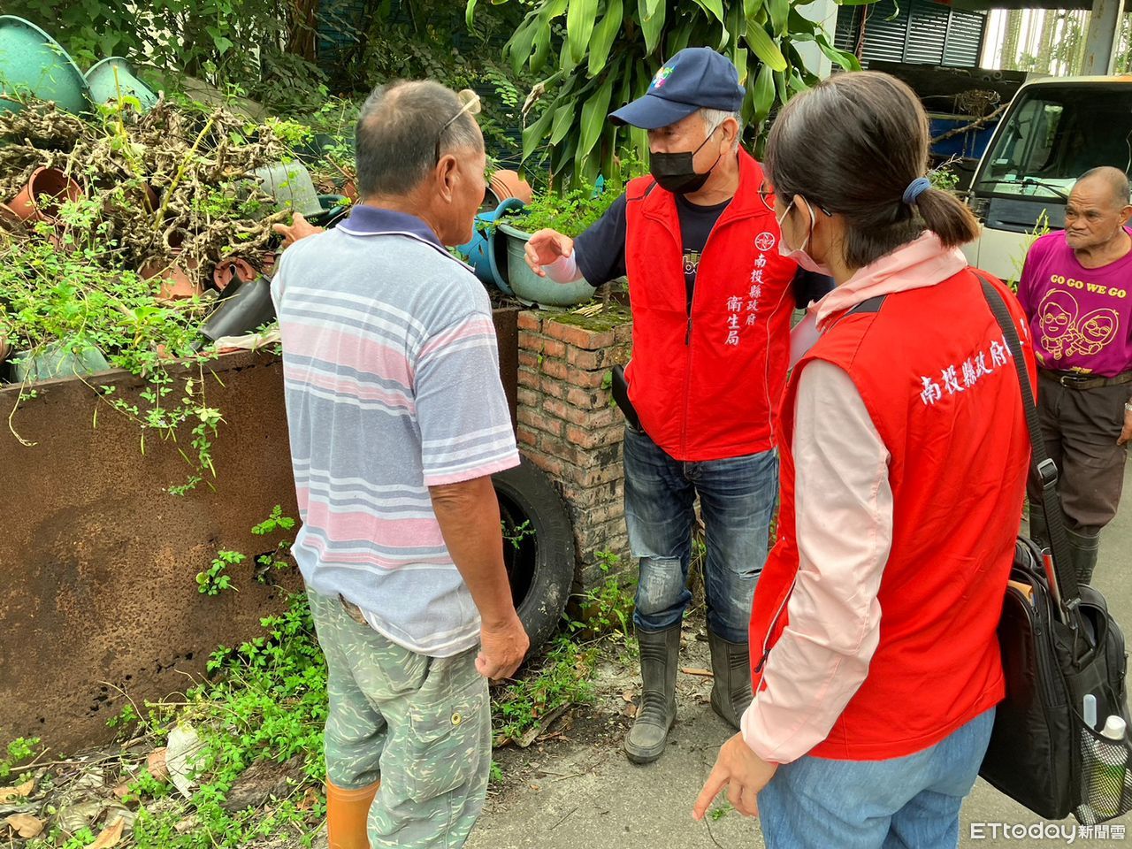 ▲南投縣衛生局實地稽查登革熱孳清,並向民眾說明 。(圖/南投縣衛生局提供,下同)
