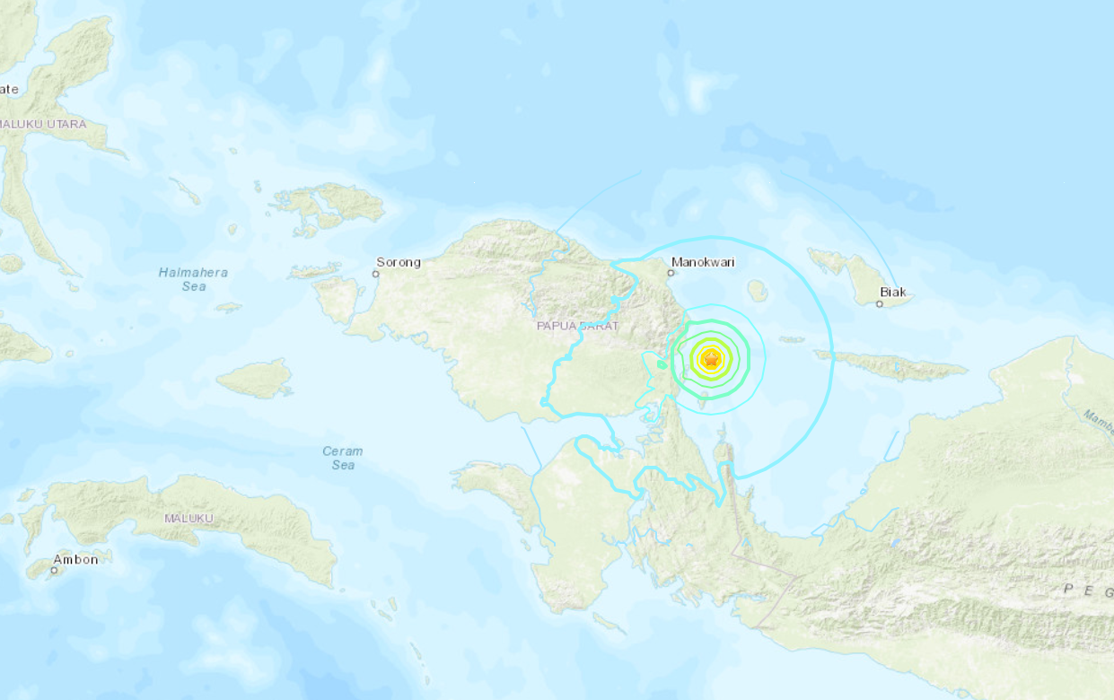 印尼中部蘭西基區(Kecamatan Ransiki)外海在當地時間9日上午7時02分發生規模6.0強震,深度僅9.1公里,目前未發布海嘯警報。