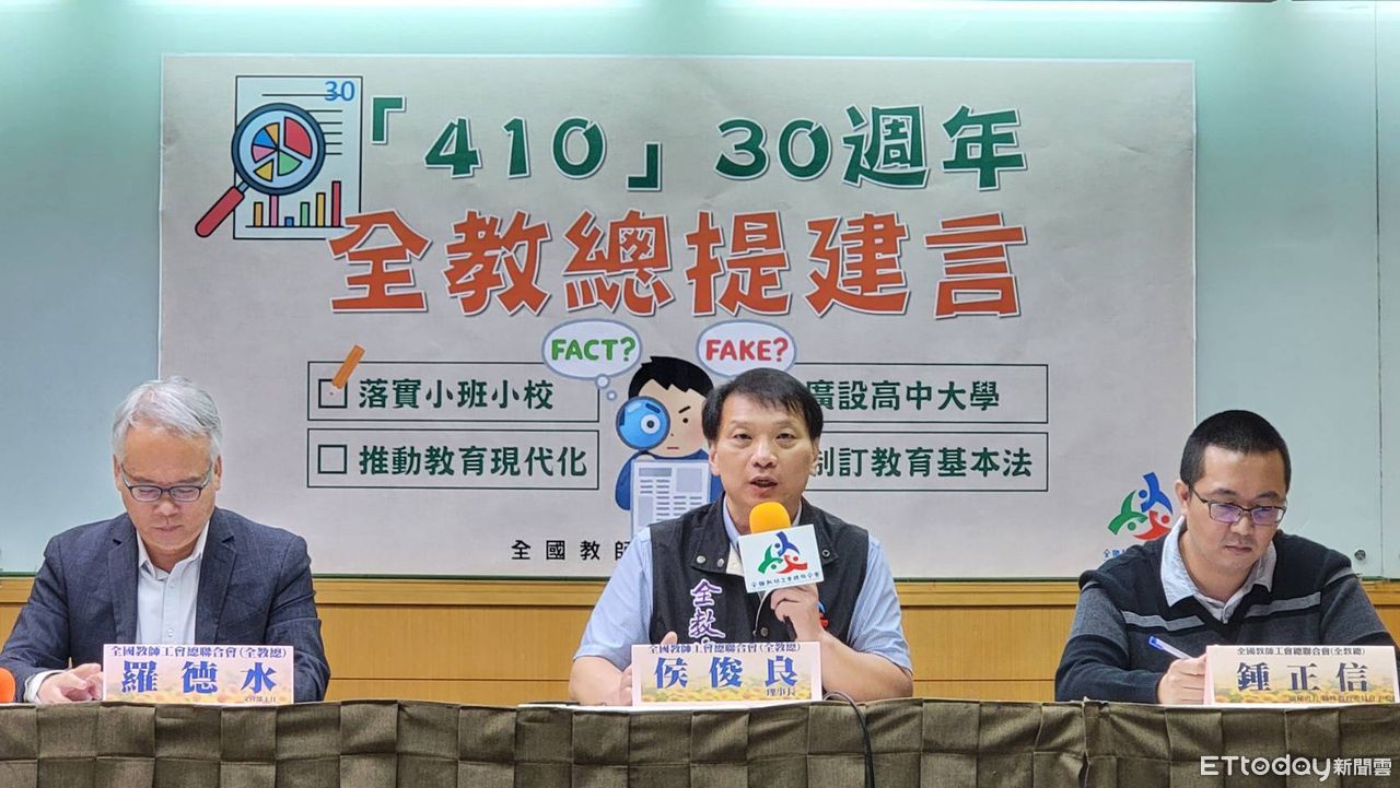 1994年「410教改大遊行」今年屆滿30年,全國教師工會總聯合會今指出,當年提出的「落實小班小校」、「廣設高中大學」等訴求,均未落實或成效不彰,當時提出的願景是每班少於30人,但在少子女化趨勢下,公校每班仍有35人,私校更高達45人,看不到政府朝精緻化教學推動。