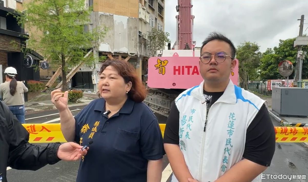 0403花蓮強震造成縣內多處房屋倒塌傾斜,其中北濱街的「幸福時刻早午餐」嚴重傾斜下陷,鄰近的另外一棟北濱街6號建物也軟腳成危樓,今(9日)上午開拆。不過,由於該建物「頭重腳輕」原故,花蓮縣議員徐子芳表示,可能會比天王星大樓還難拆。