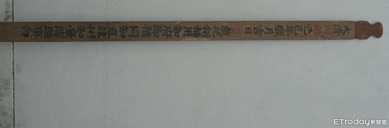 ▲台南市立博物館典藏「同治八年重建台灣縣署樑籤」,日前獲台南市古物審議委員一致肯定其價值,經台南市政府公告指定為「一般古物」。(圖/記者林東良翻攝,下同)