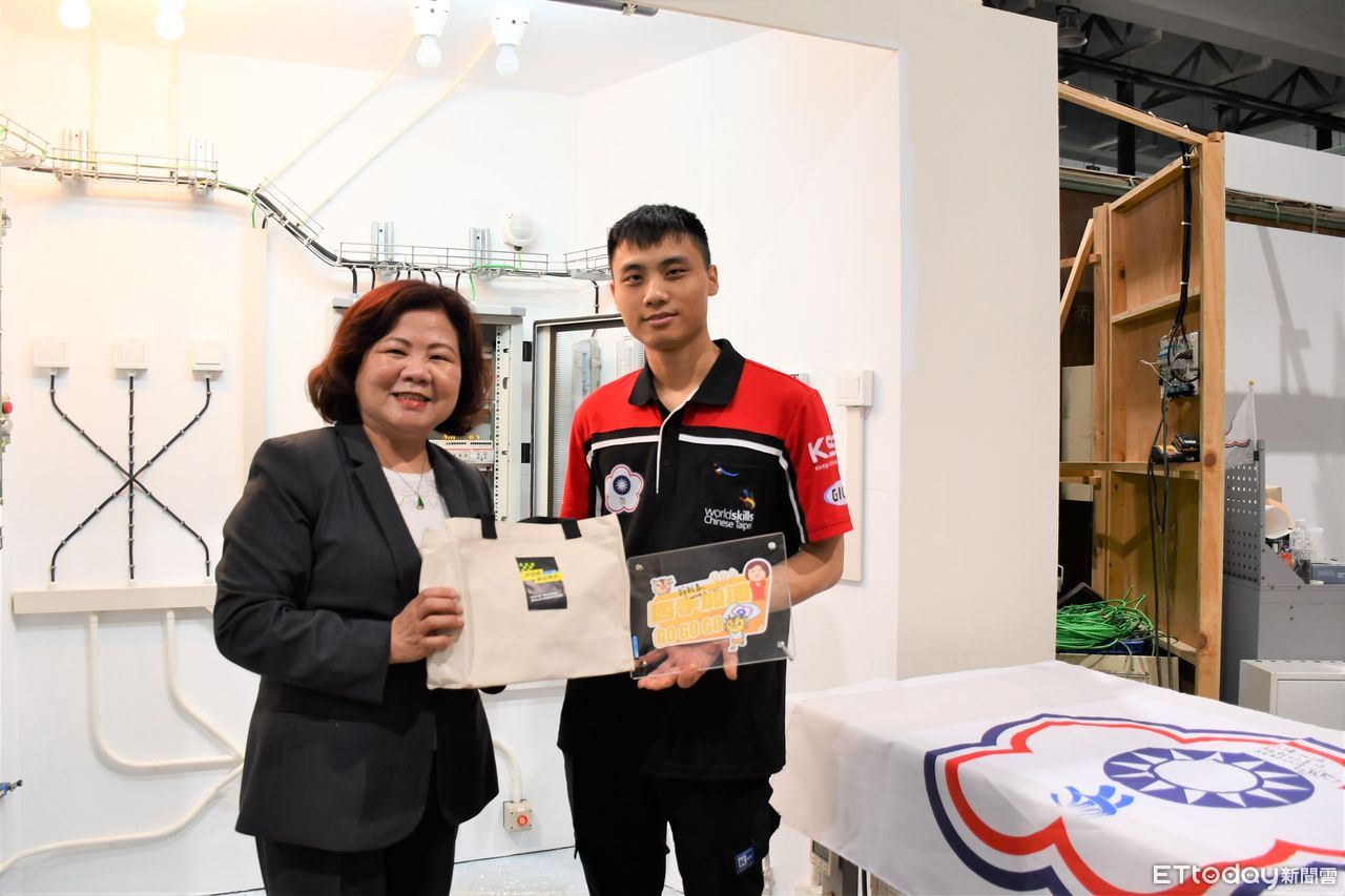 勞動部長許銘春參訪中,第2屆亞洲技能競賽電氣裝配職類金牌國手凌志隆,也向部長展現苦練成果,連訓練師都誇說:「凌志隆超認真,幾乎全年無休!連清明連假也是閉關狂練,全身散發滿滿奪牌決心。」令阿春部長讚譽有加,也勉勵大家把握最後衝刺。