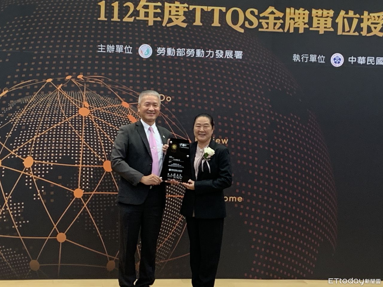 ▲大台南總工會2023年人才發展品質再傳佳音,榮獲勞動部最高榮譽金牌肯定,今由副理事長陳美靜帶領團隊北上受獎。(圖/記者林東良翻攝,下同)