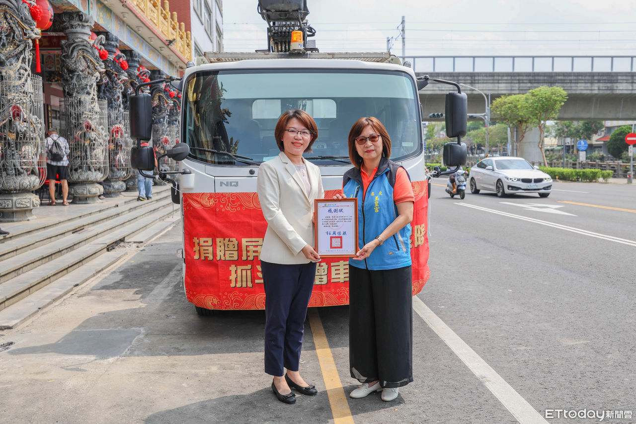 ▲屏東玉皇宮捐贈抓斗車給屏東市公所 。(圖/記者陳崑福翻攝)
